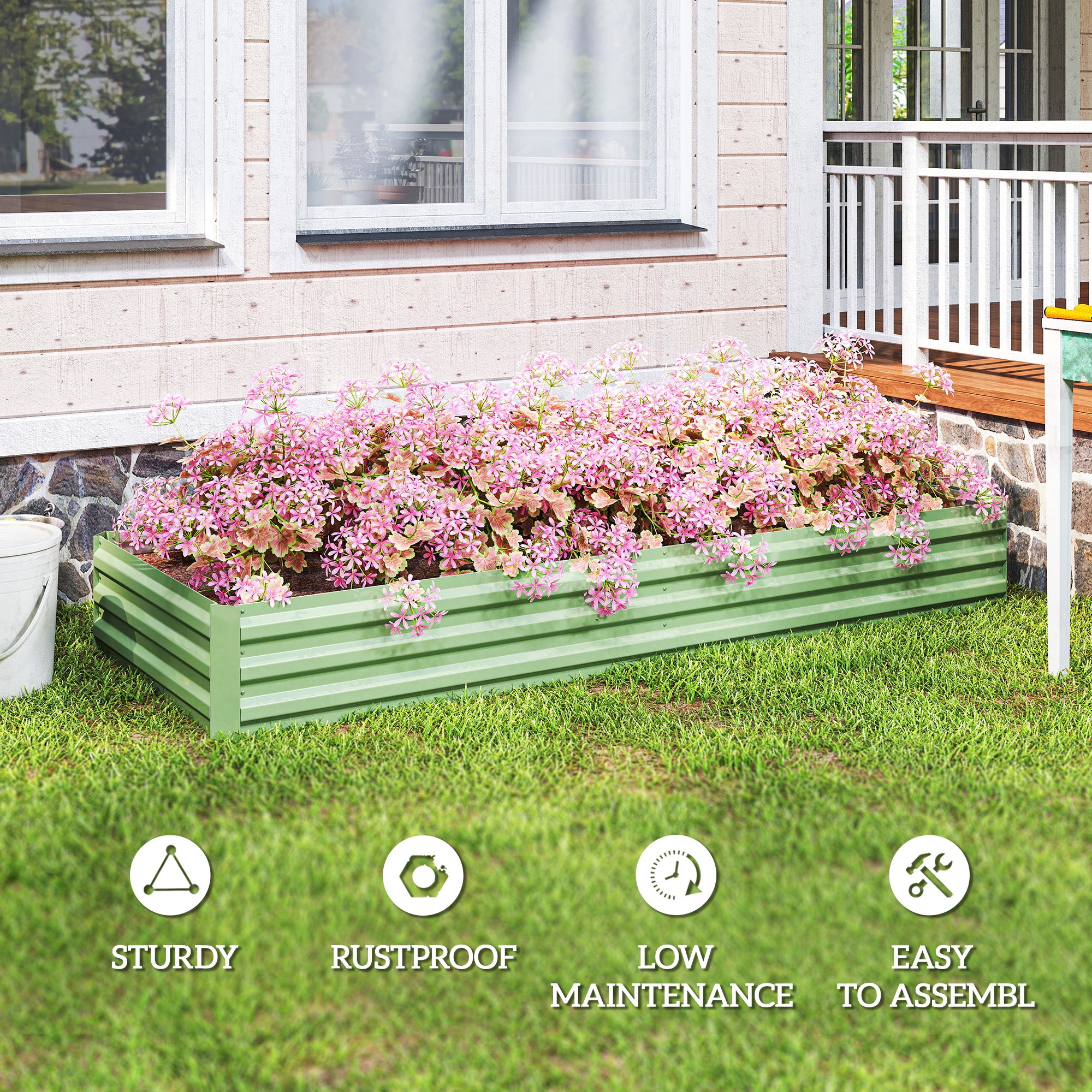 Ce potager surélevé en métal est idéal pour organiser plusieurs types de plantes ou de fleurs, même lorsque l’espace est limité sur une terrasse ou un balcon. Sa conception simple et fonctionnelle permet de créer un jardin structuré et harmonieux, tout en optimisant la surface disponible.