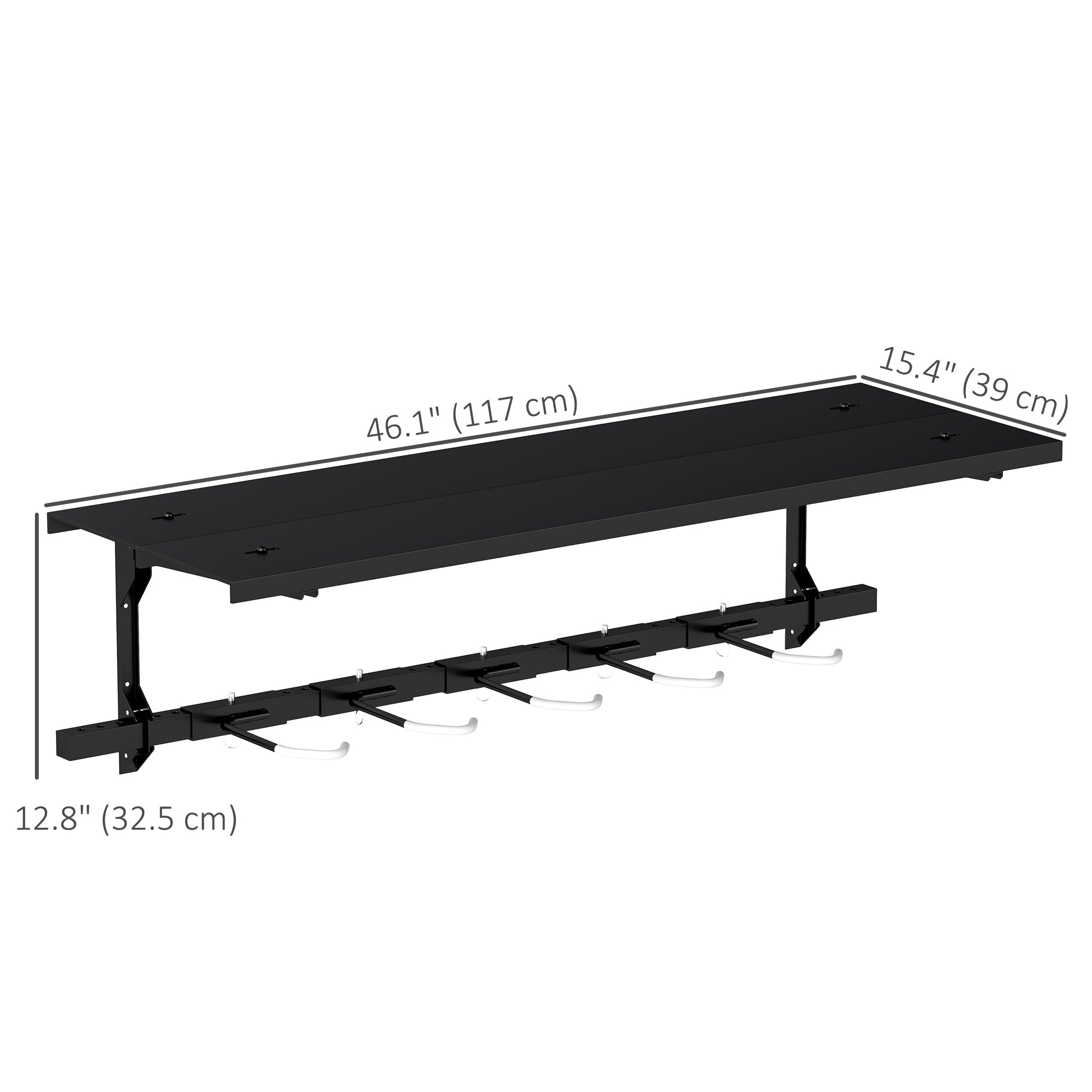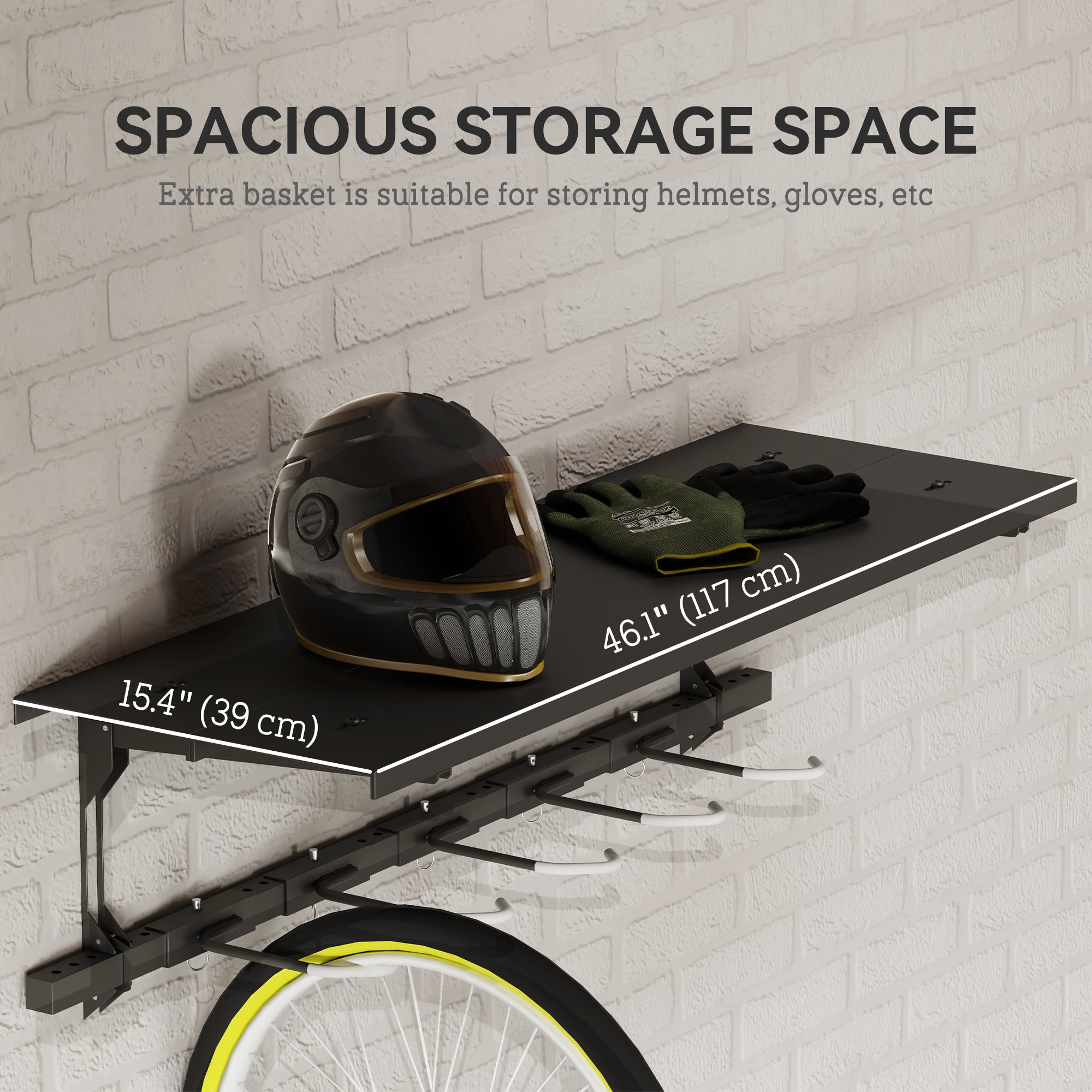 Adapté aux vélos de route, VTT, vélos de loisirs et vélos familiaux, ce support est équipé de cinq crochets réglables permettant un rangement personnalisé selon vos besoins. L’étagère supérieure intégrée est idéale pour organiser casques, chaussures, pompes, outils et accessoires essentiels.