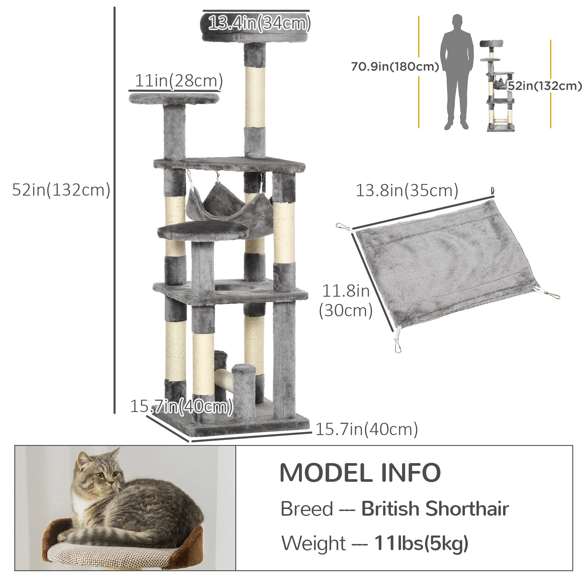 Arbre à chat gris : tour multi-niveaux pour grimper, jouer et se détendre