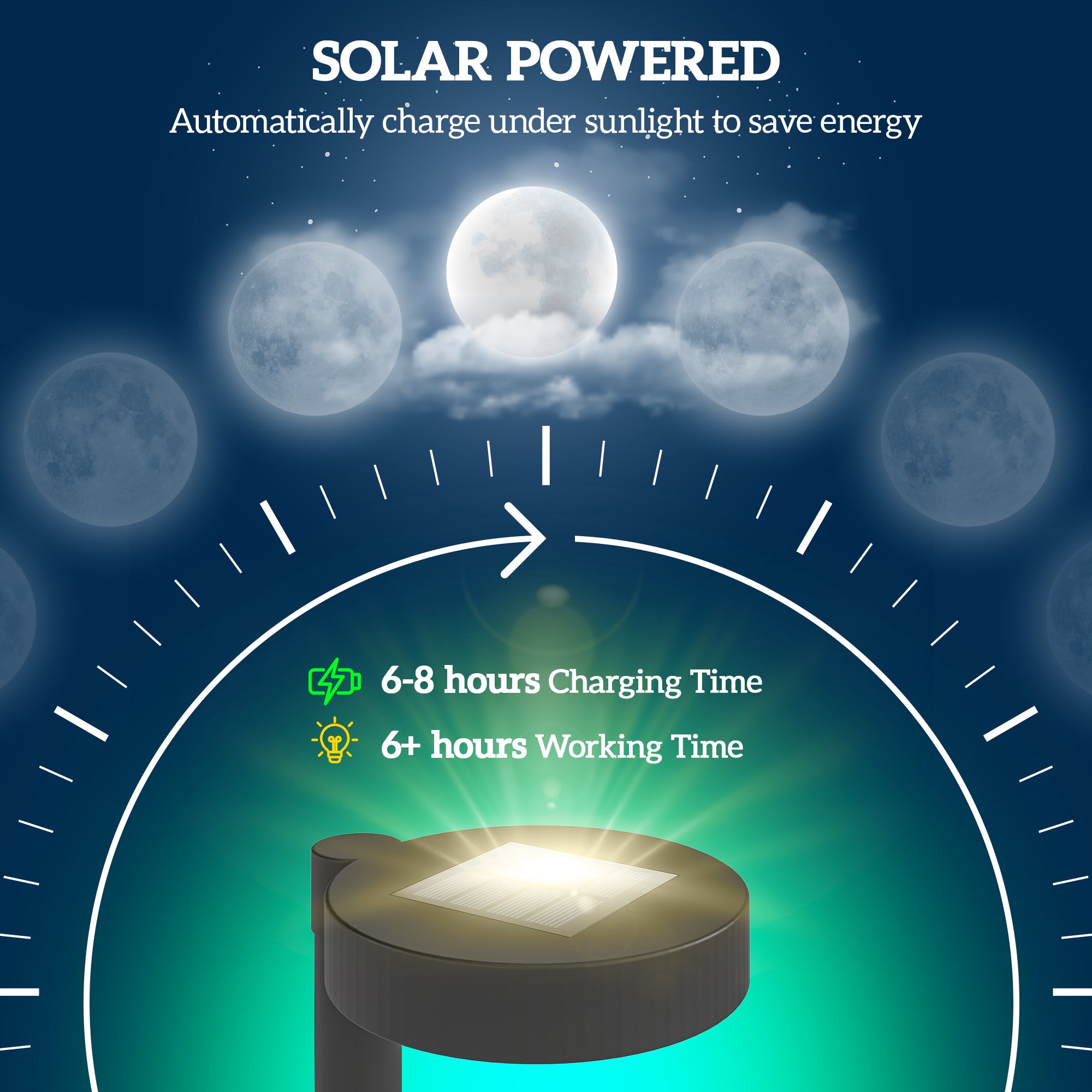 Aucun assemblage n’est requis. Il suffit de retirer la languette de protection et d’insérer les lampes dans le sol. Après une charge complète de 6 à 8 heures en plein soleil, elles offrent plus de 6 heures d’éclairage. L’entretien est minimal et aucun câblage n’est nécessaire.