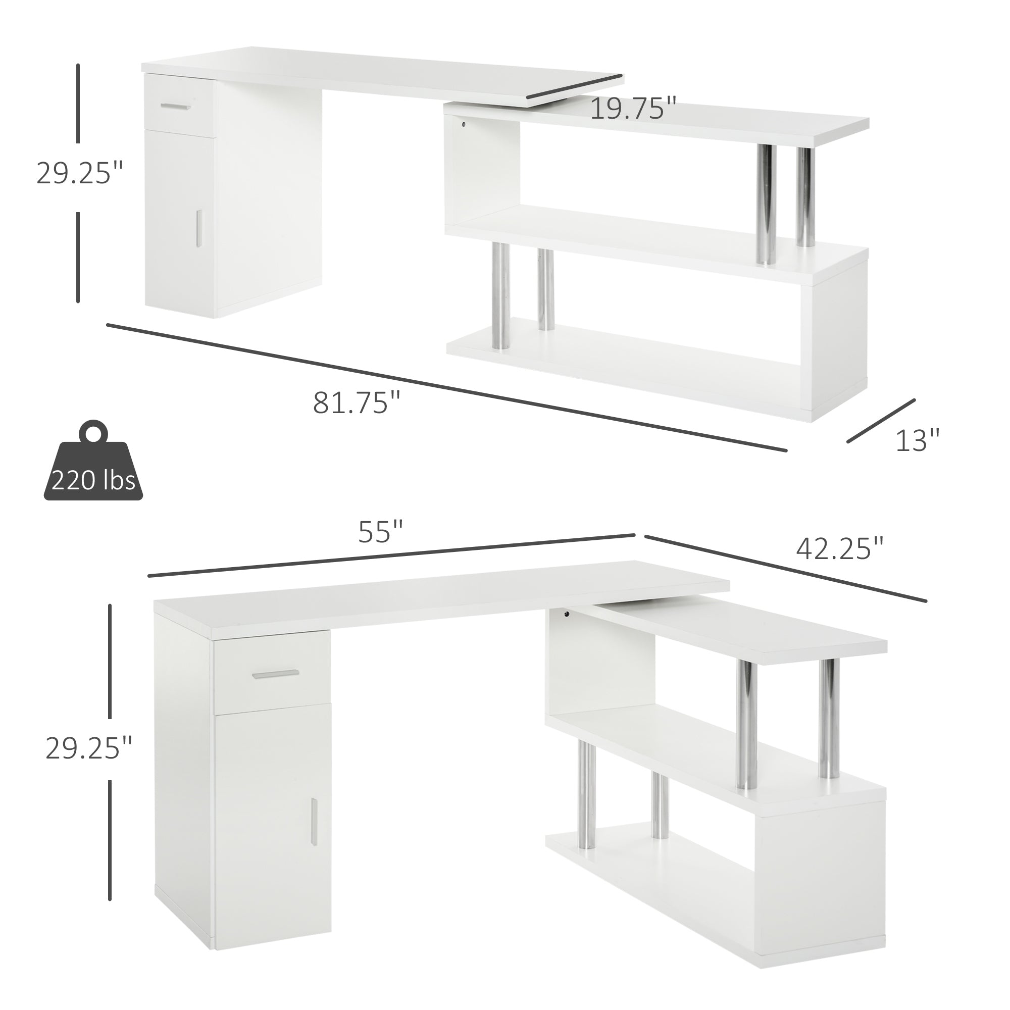 Bureau d’angle en L blanc – Moderne, rotatif et multifonction avec rangement intégré