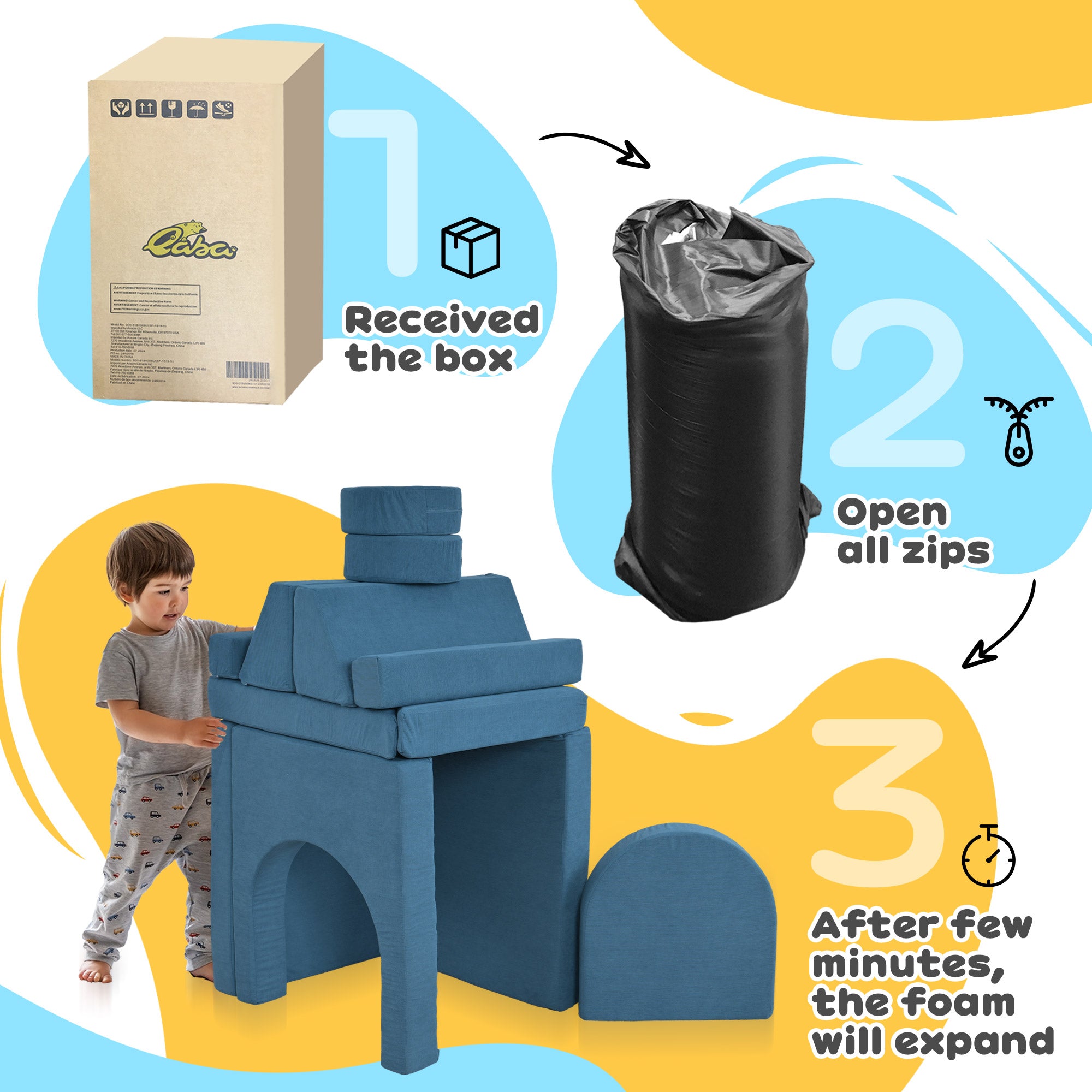 Confort et sécurité : Conçu en mousse haute densité 28D, cet ensemble est à la fois doux, stable et sécuritaire. Les matériaux utilisés respectent les normes de sécurité et offrent une assise moelleuse idéale pour les tout-petits, garantissant un environnement de jeu sain et agréable.