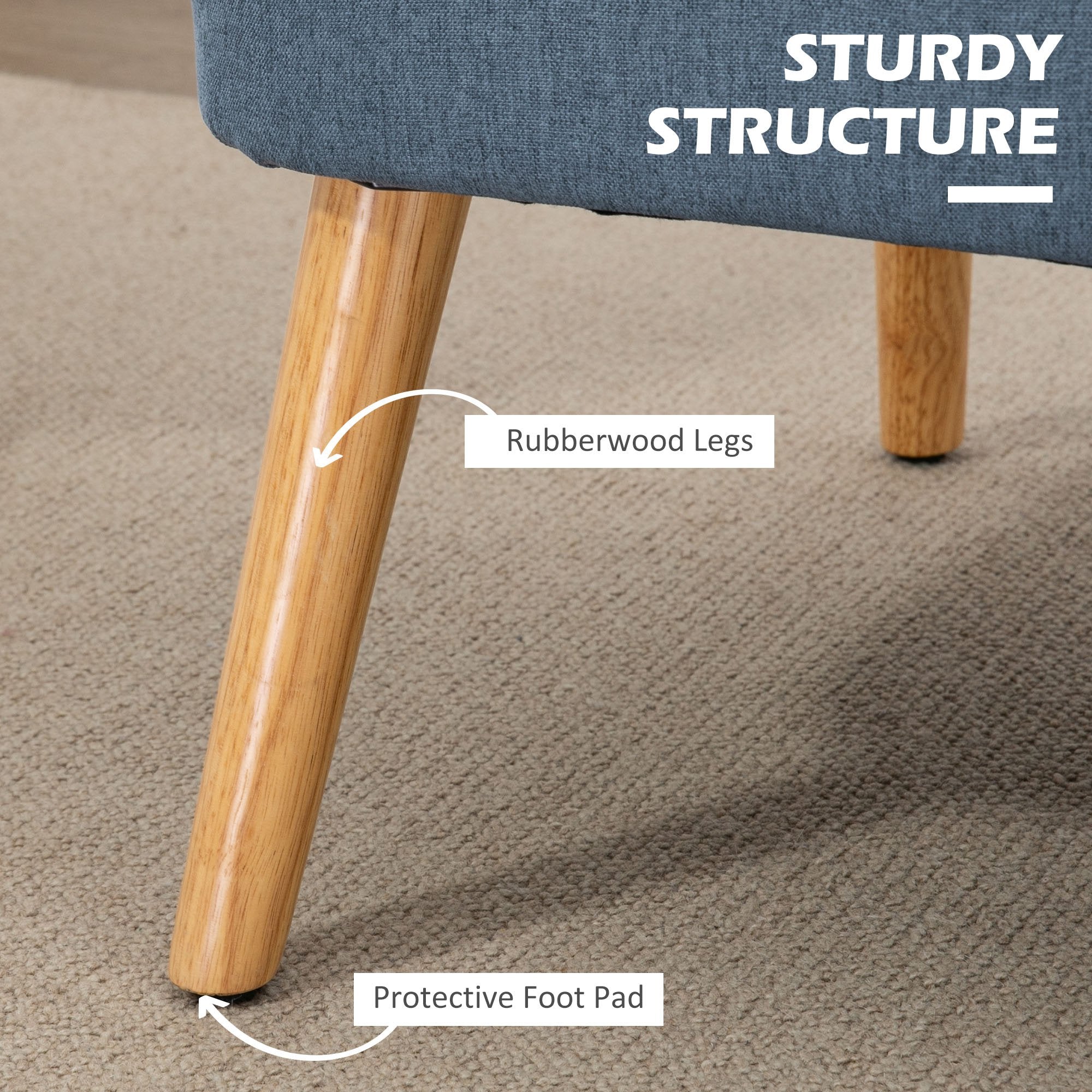 Canapé causeuse 2 places en lin bleu avec pieds en bois naturel