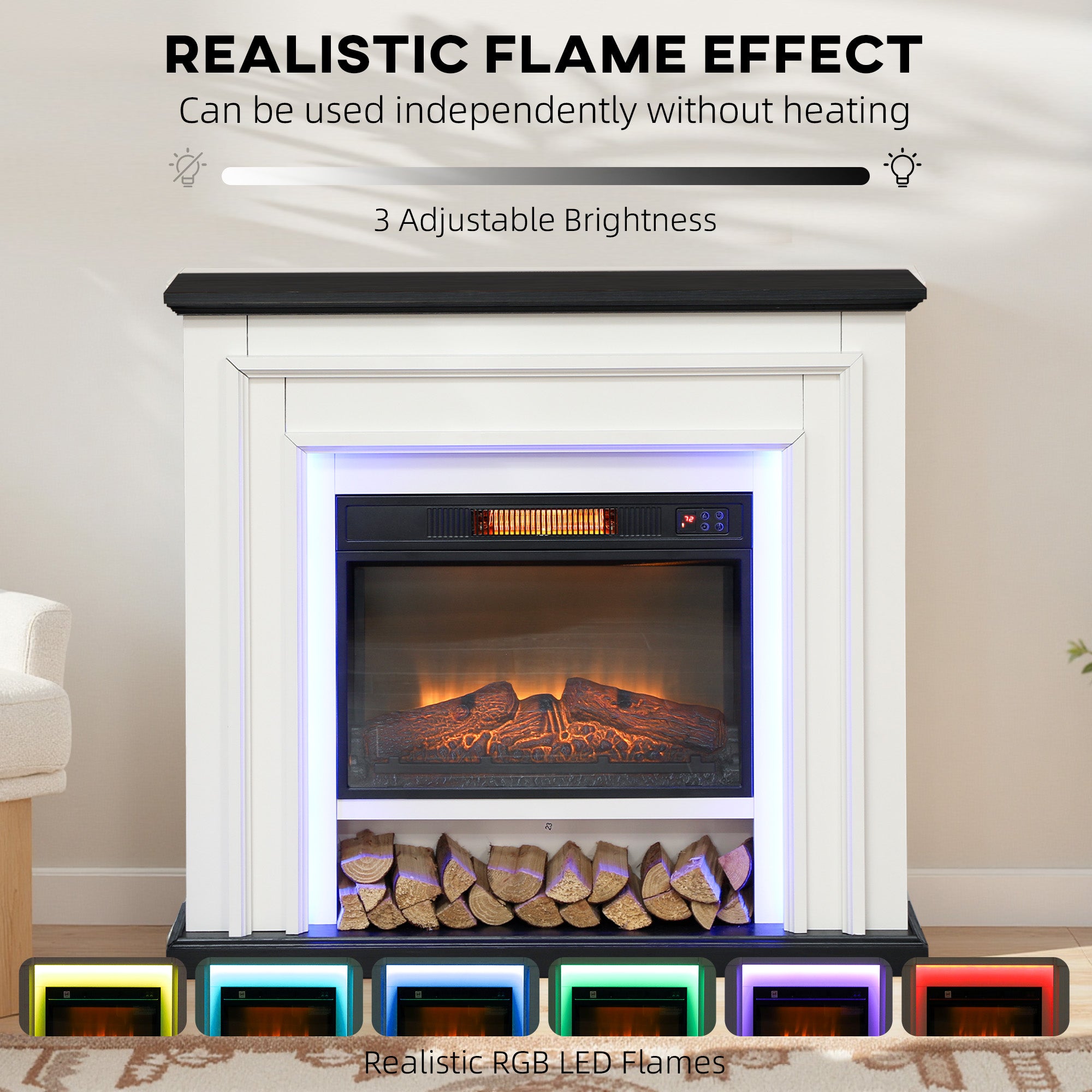 Matériaux de qualité : Fabriquée en métal, ABS, verre trempé et panneau de particules, cette cheminée allie solidité et raffinement. Son compartiment de rangement intégré pour les bûches factices accentue l’effet réaliste du feu et complète son look contemporain.