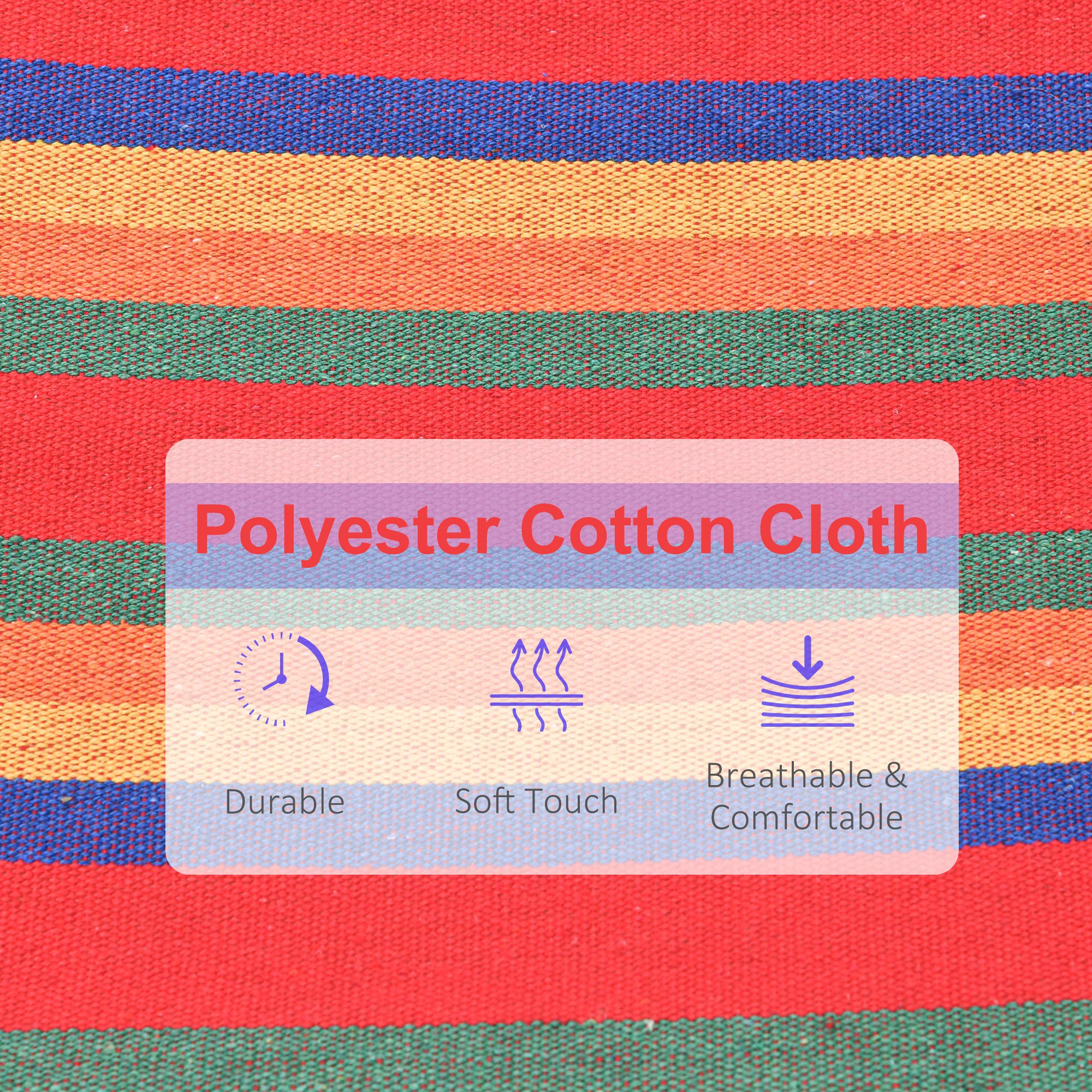 Profitez pleinement du grand air avec ce hamac au design multicolore éclatant qui apporte une touche dynamique à votre espace extérieur. Son appui-tête intégré procure une sensation semblable à celle d’un lit, tandis que le tissu en polyester-coton offre douceur et confort pour de longues heures de détente.