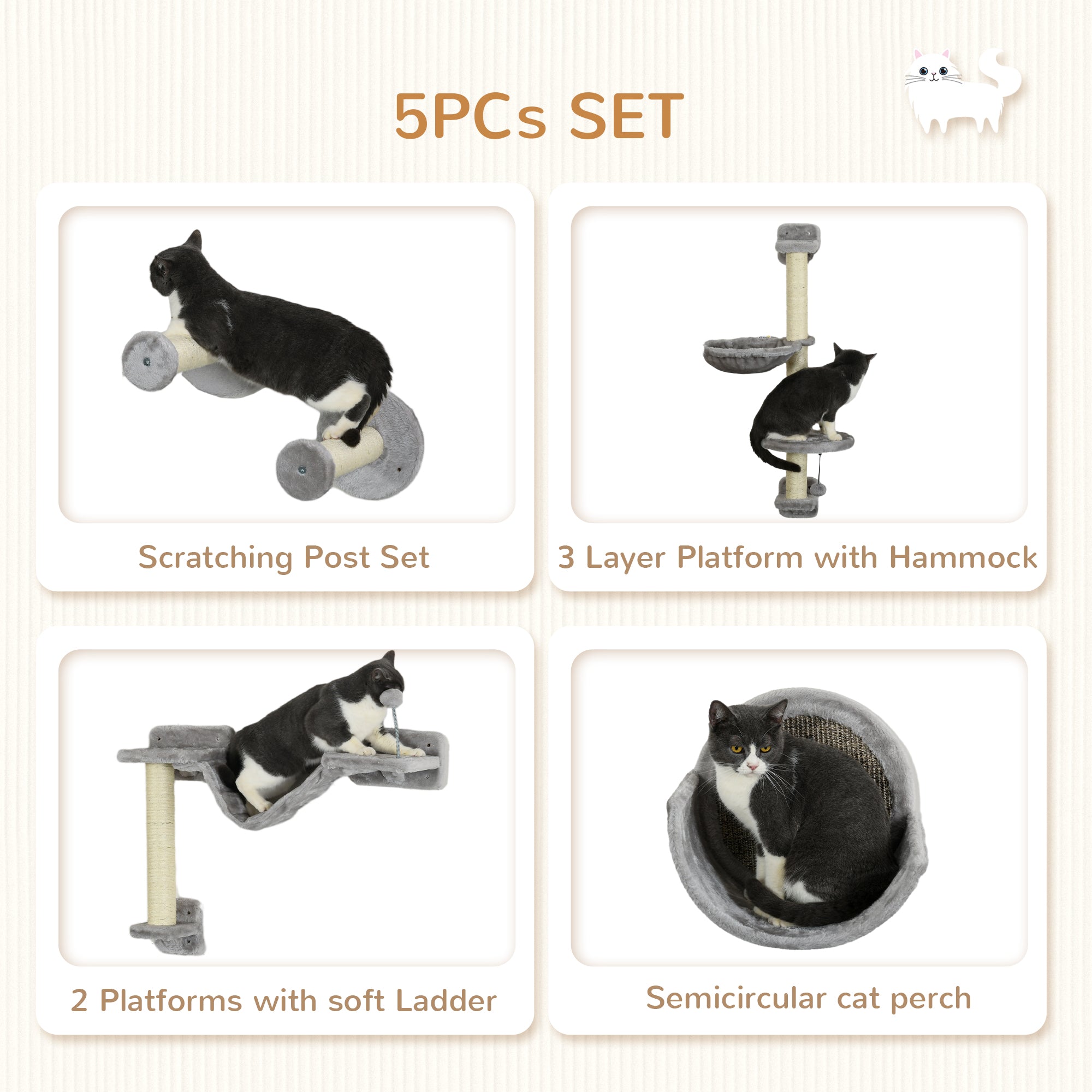 Étagère murale pour chat – Aire de jeu murale 5 pièces gris clair et beige