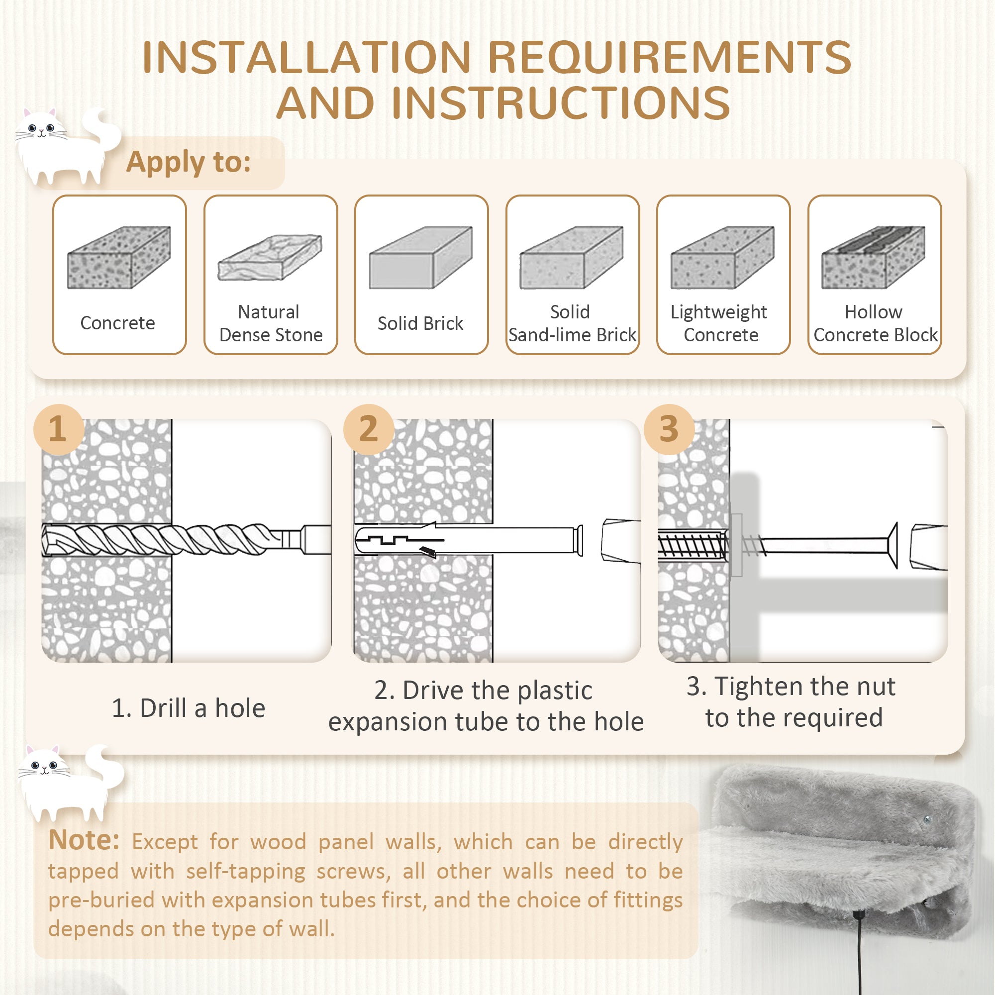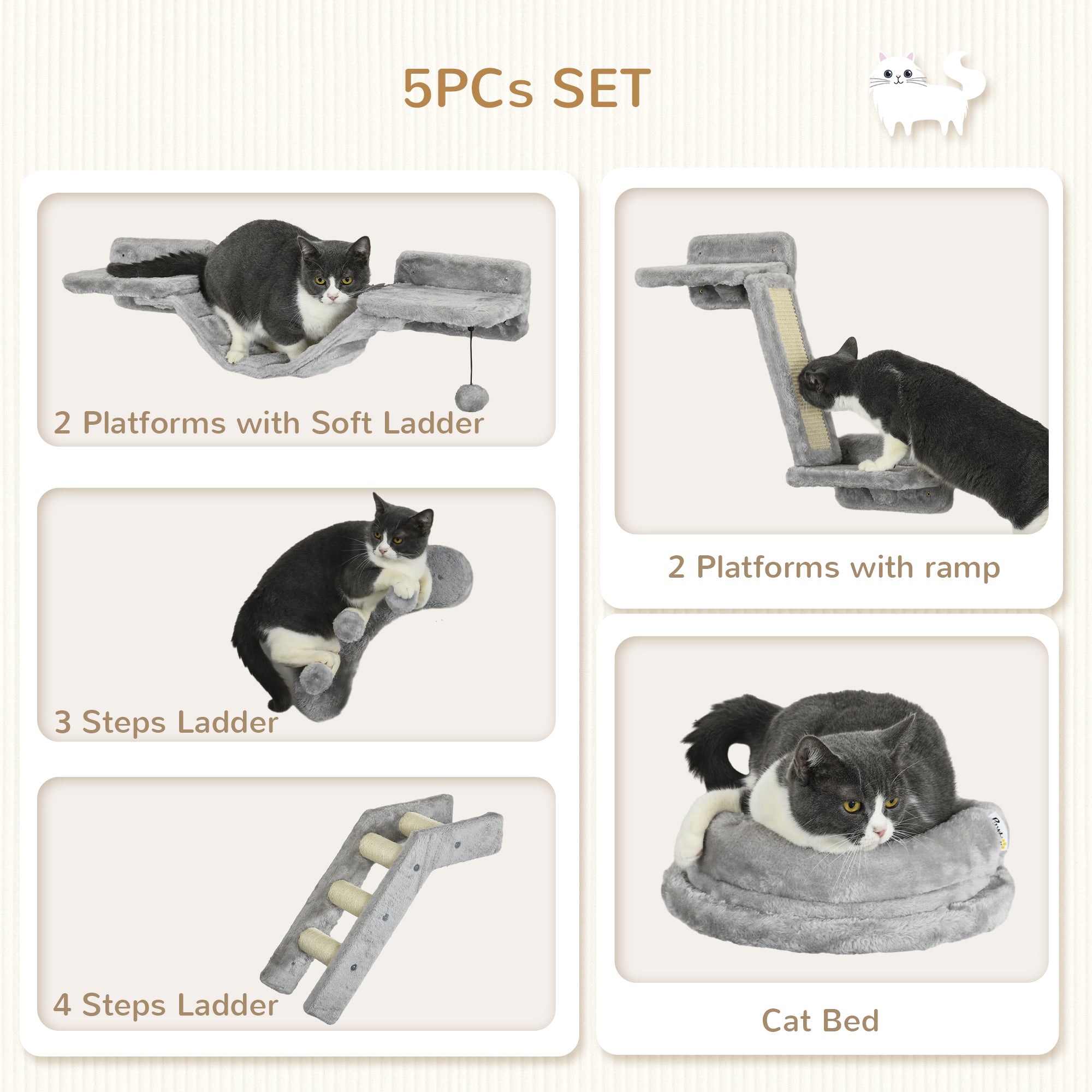 - Contient : 1 ensemble d’étagères murales pour chat, 1 manuel