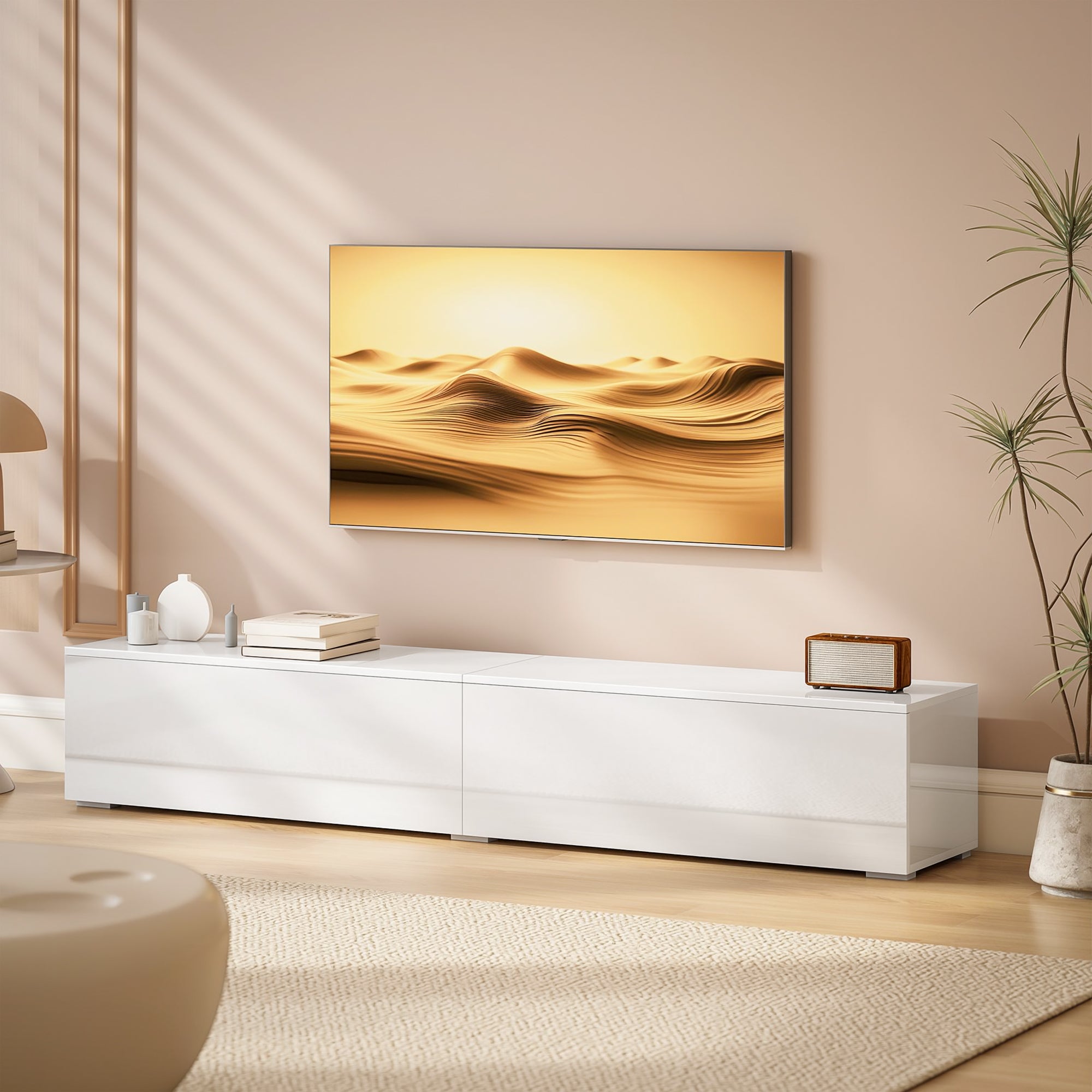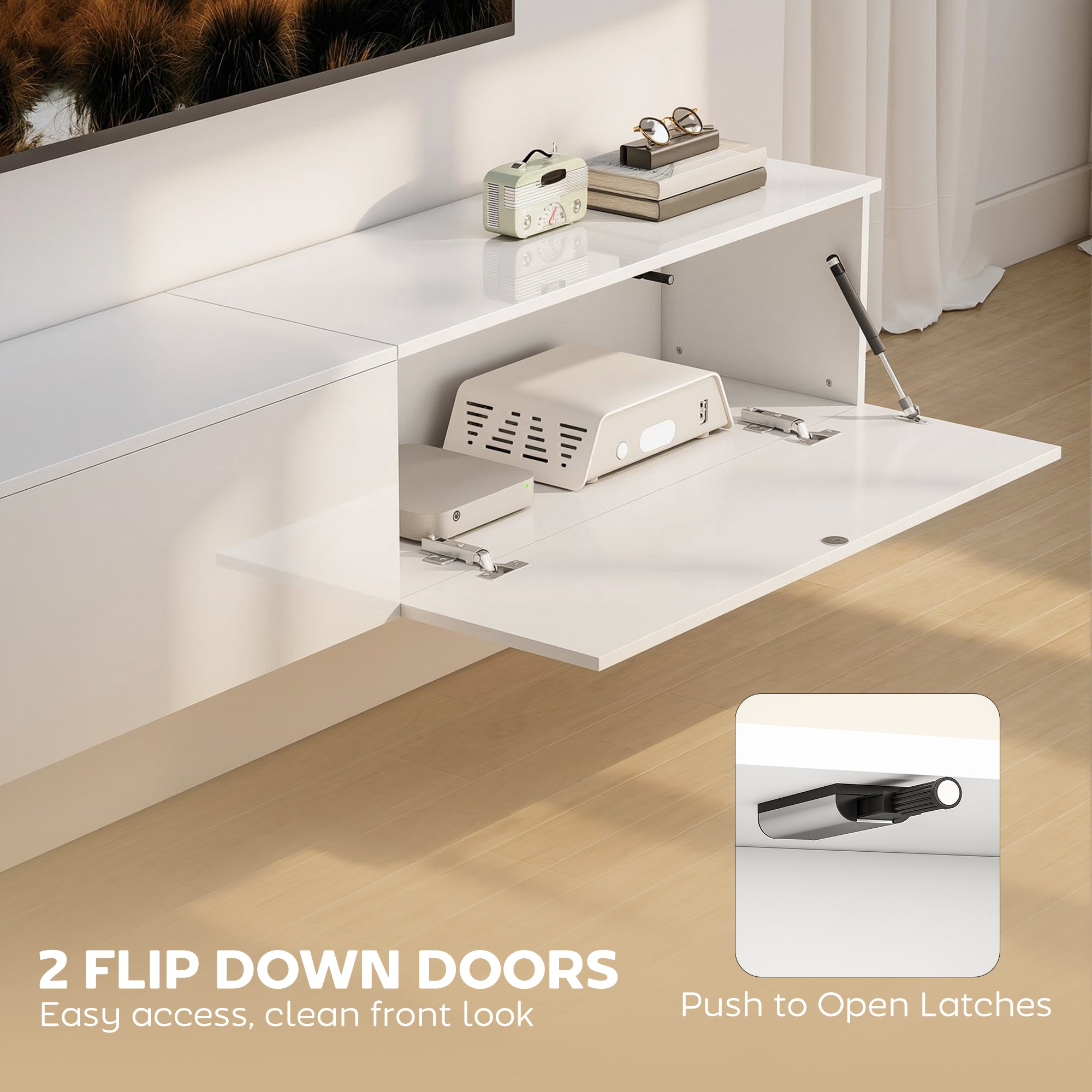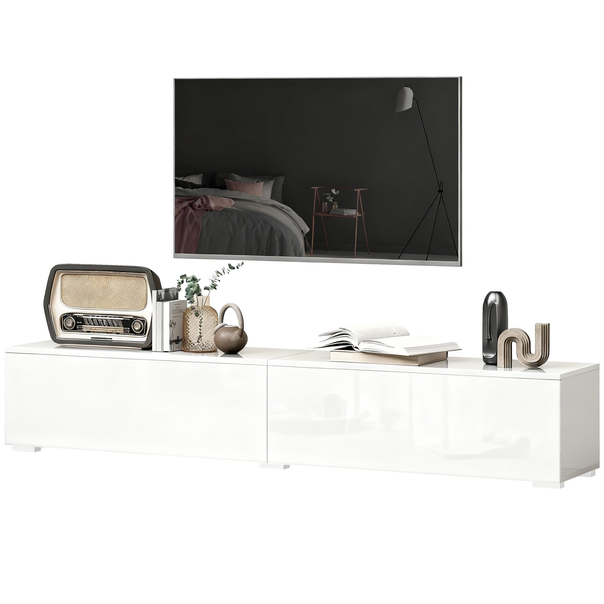 Meuble TV mural suspendu blanc brillant pour téléviseur jusqu’à 75 pouces