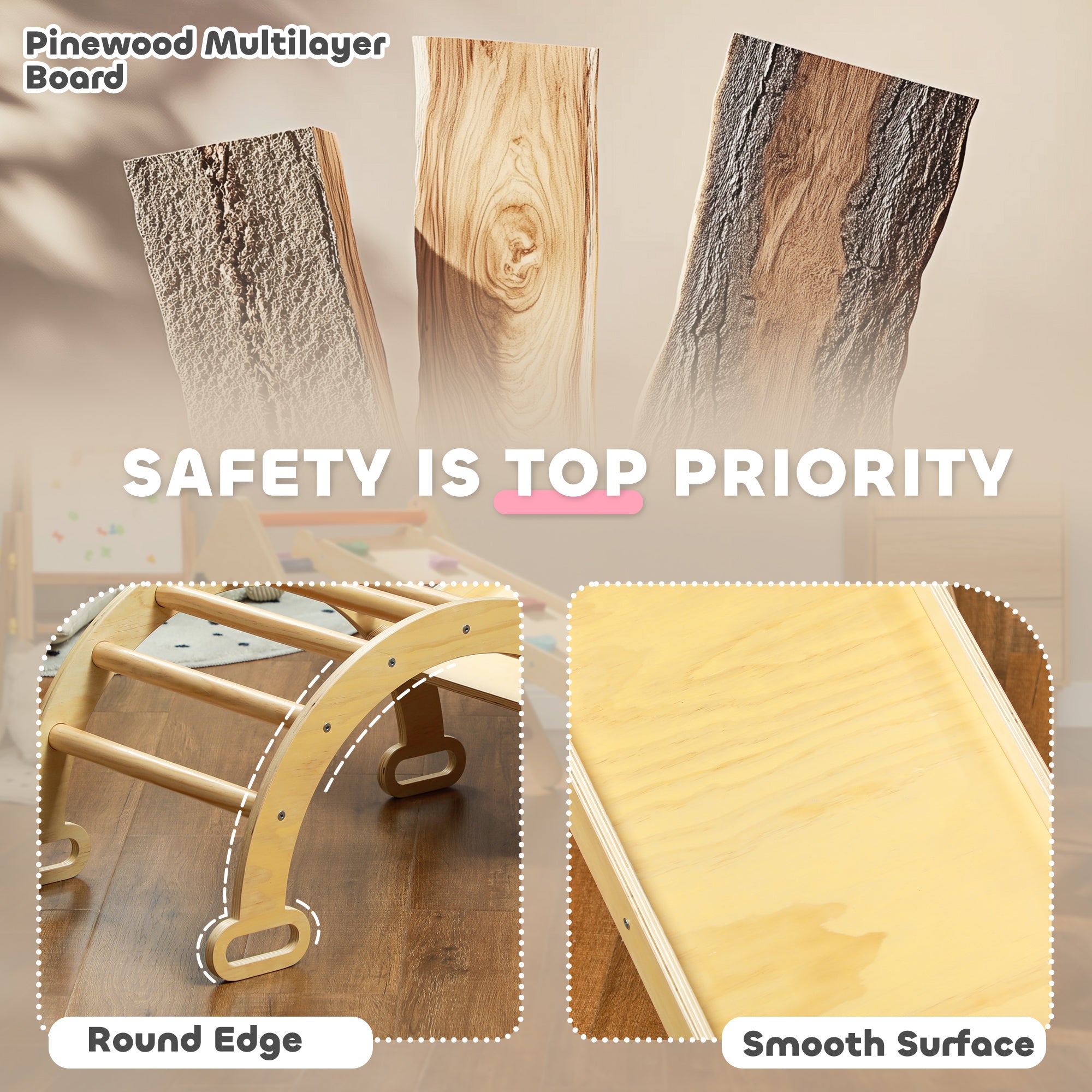 Kit d’escalade Montessori 5 en 1 pour tout-petits – Bois naturel
