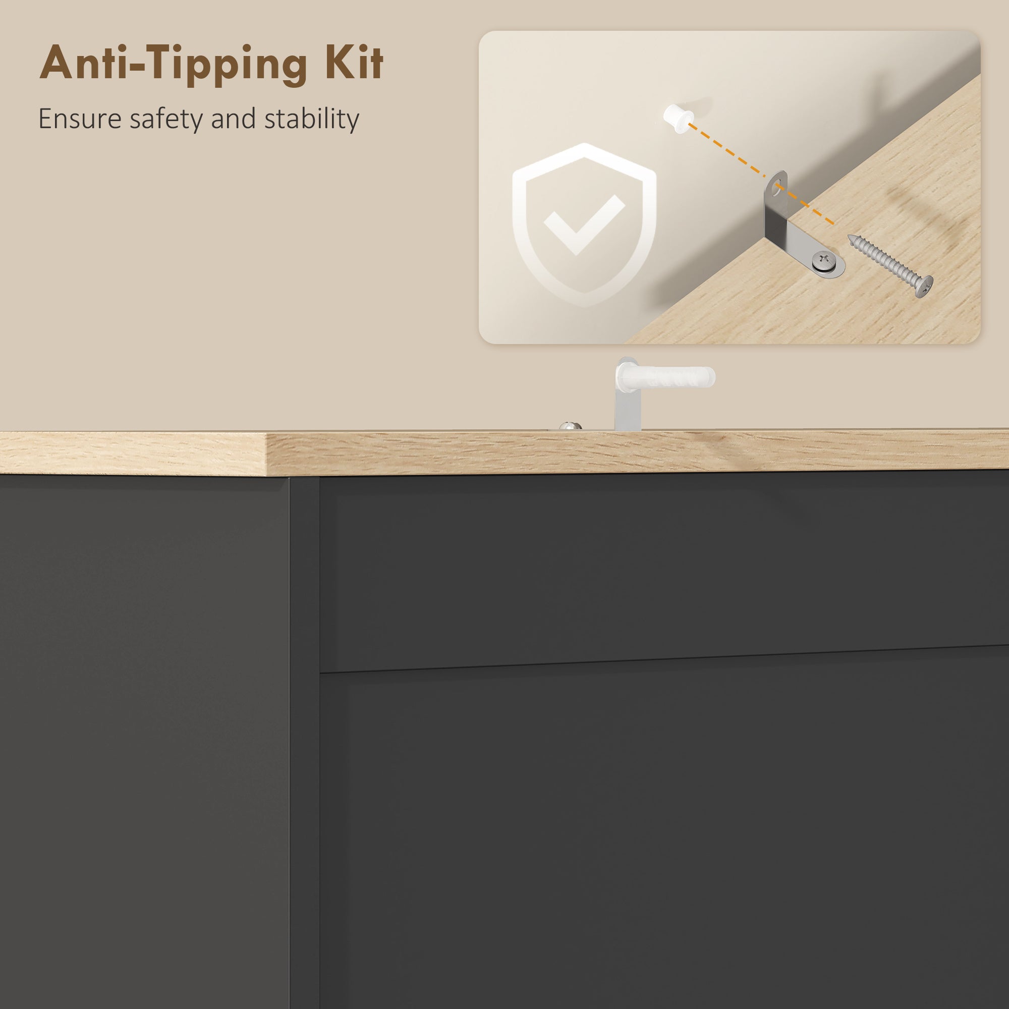 L’assemblage est requis et conçu pour être simple et structuré. La surface mélaminée se nettoie facilement, tandis que le dispositif anti-basculement inclus améliore la sécurité au quotidien.