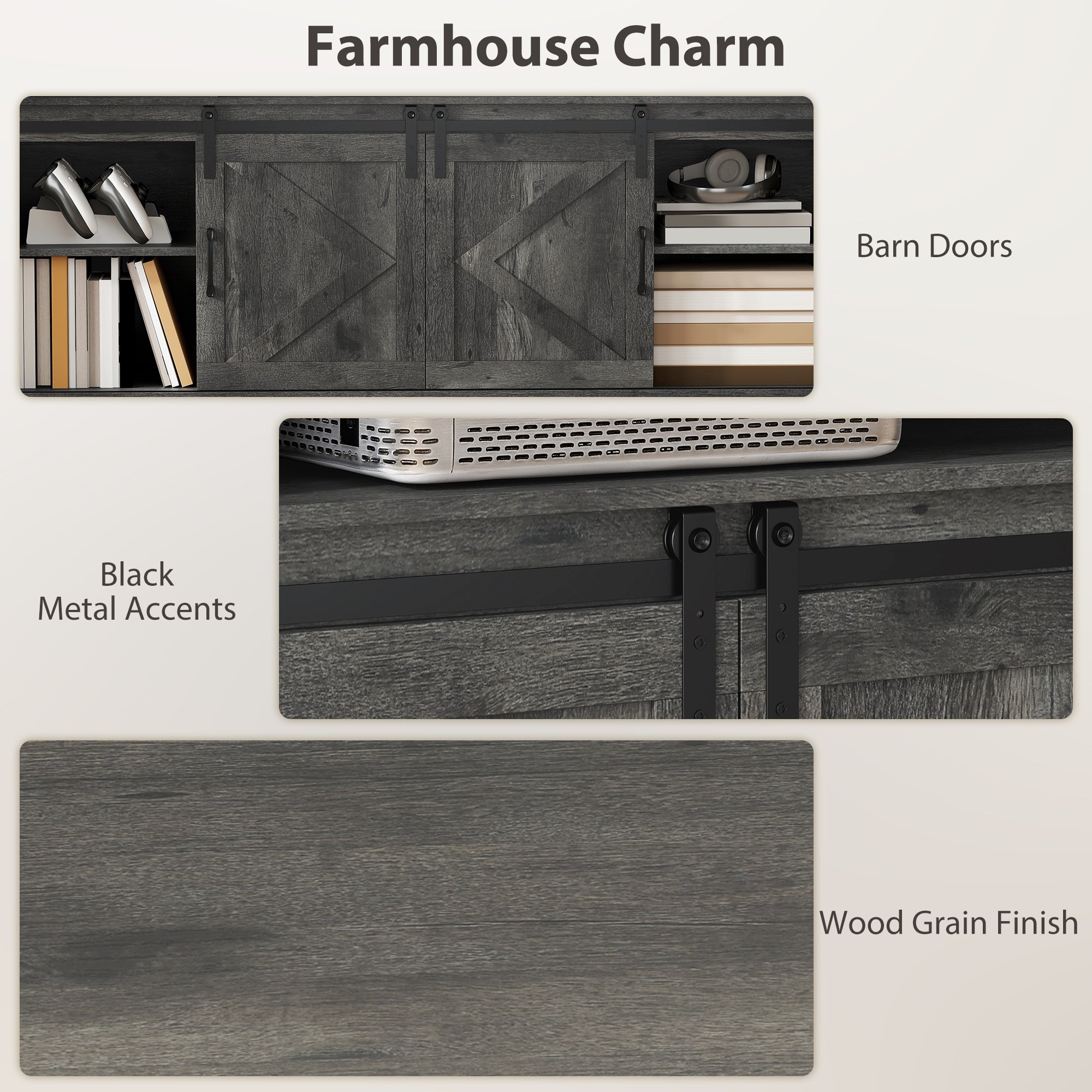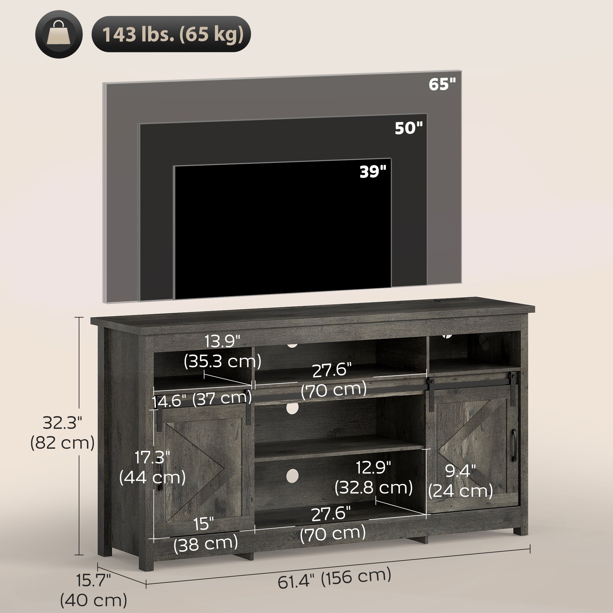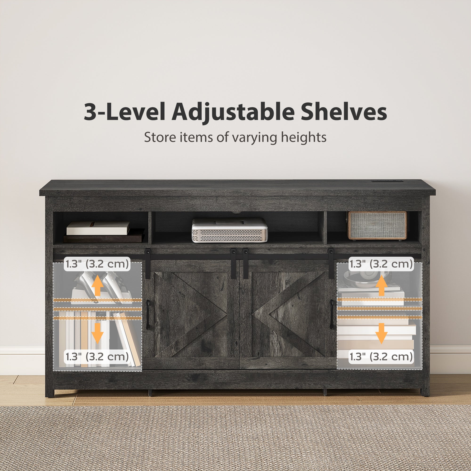 Meuble TV rustique gris foncé – Grand support pour téléviseur jusqu’à 72 pouces avec prises intégrées et portes coulissantes