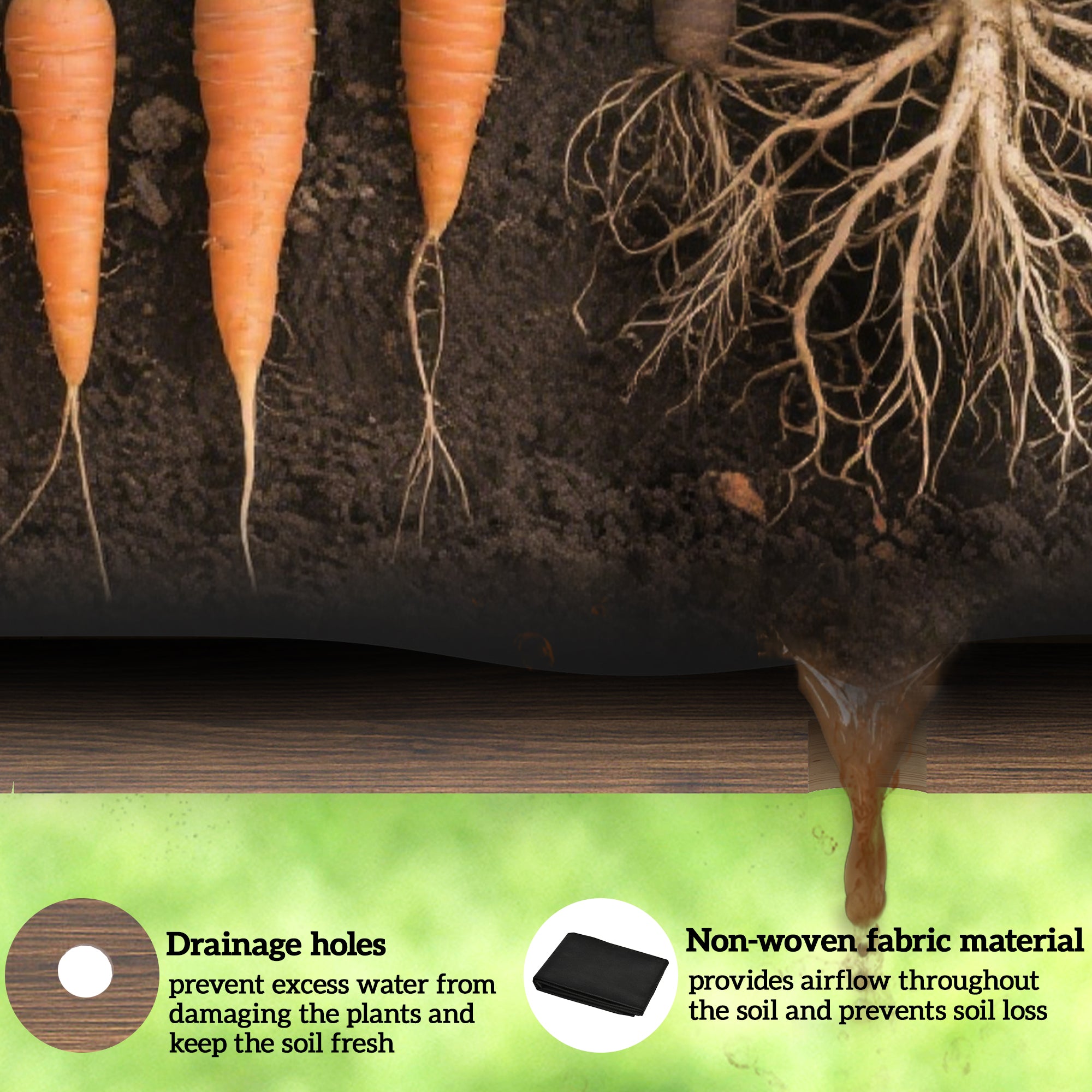 Fabriqué en bois de sapin massif, ce potager est conçu pour durer et peut être personnalisé avec la couleur de votre choix. La doublure intérieure en tissu non tissé assure une bonne respirabilité et une excellente perméabilité du sol, tandis que les trous de drainage permettent d’évacuer l’excès d’eau et de préserver la santé des plantes.