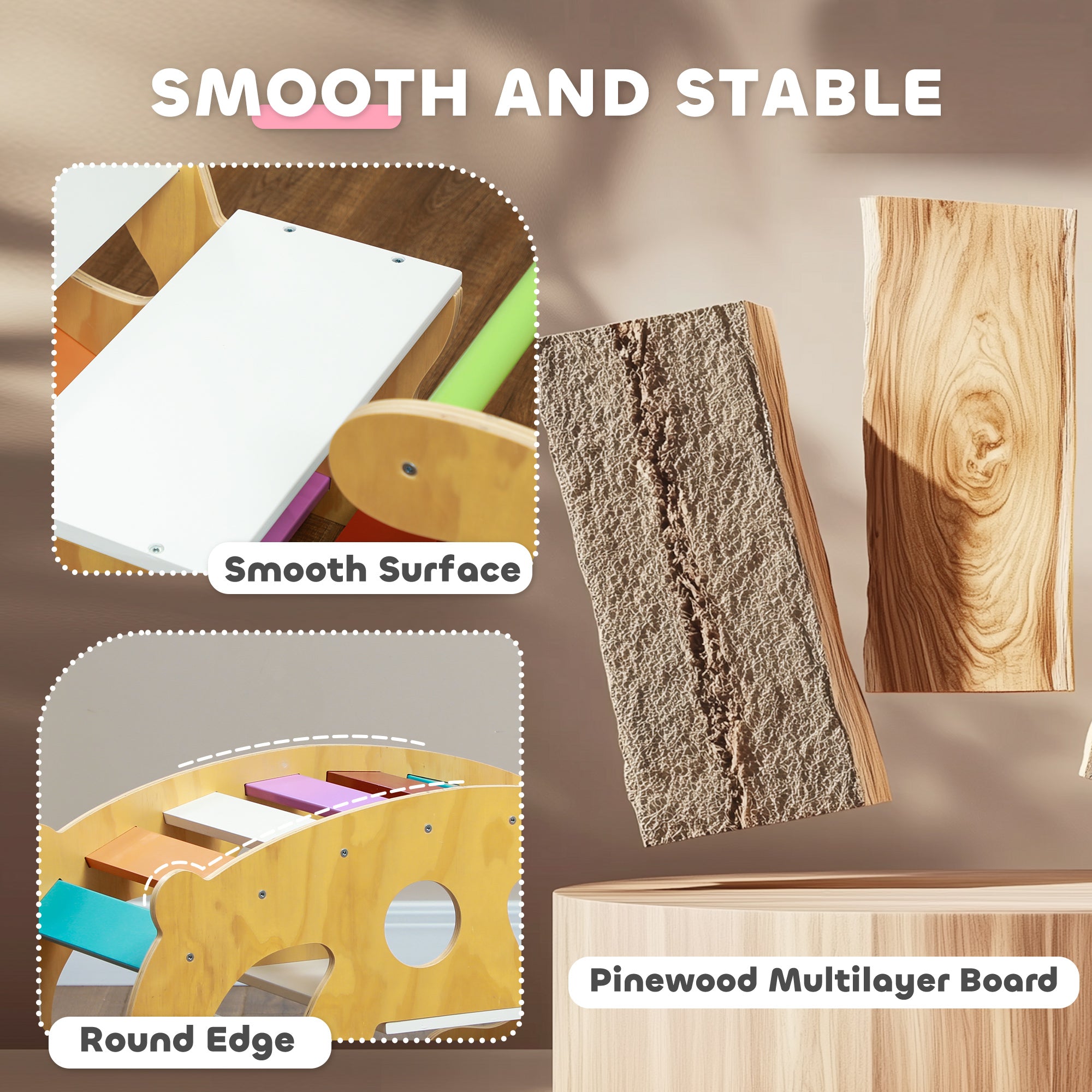 Sécurité et durabilité : Construit en panneaux multicouches de bois de pin massif, il offre une structure stable, solide et sans arêtes vives. Sa finition lisse assure un contact doux et sécuritaire, parfaitement adaptée aux petites mains curieuses.