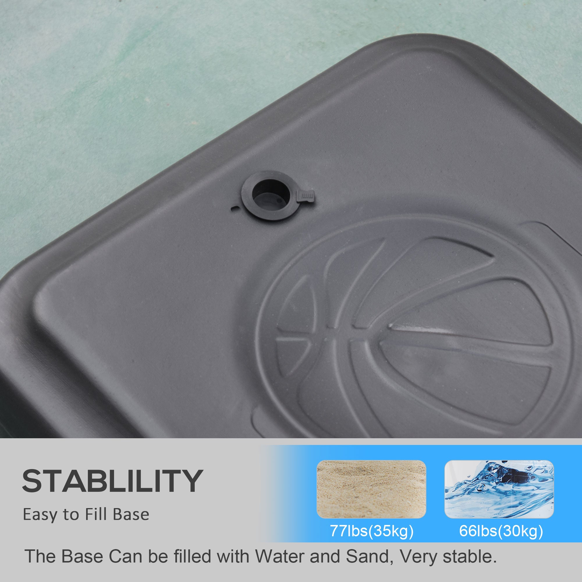 Stabilité et mobilité : Facile à installer sans outils, il suffit de remplir la base avec 77 lb de sable ou 66 lb d’eau pour le maintenir en place. Les deux roulettes intégrées facilitent son déplacement, vous permettant de le ranger ou de le repositionner rapidement selon vos besoins.