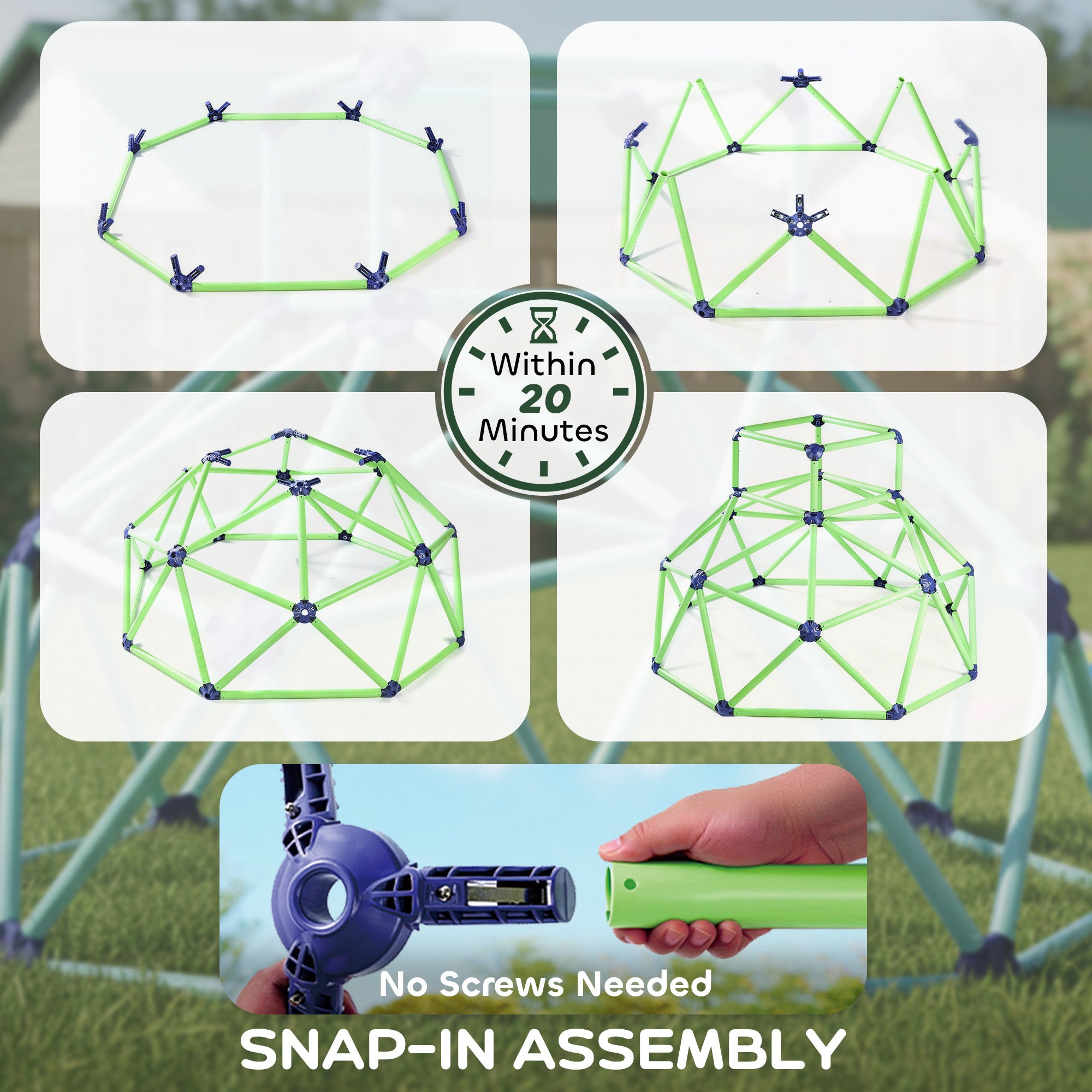 Fabriqué en plastique durable et résistant aux UV, ce dôme assure une excellente longévité même en utilisation extérieure prolongée. Sa structure robuste peut supporter jusqu’à 198 lb (90 kg), permettant à plusieurs enfants de jouer simultanément. Les bords lisses offrent un environnement sécuritaire.