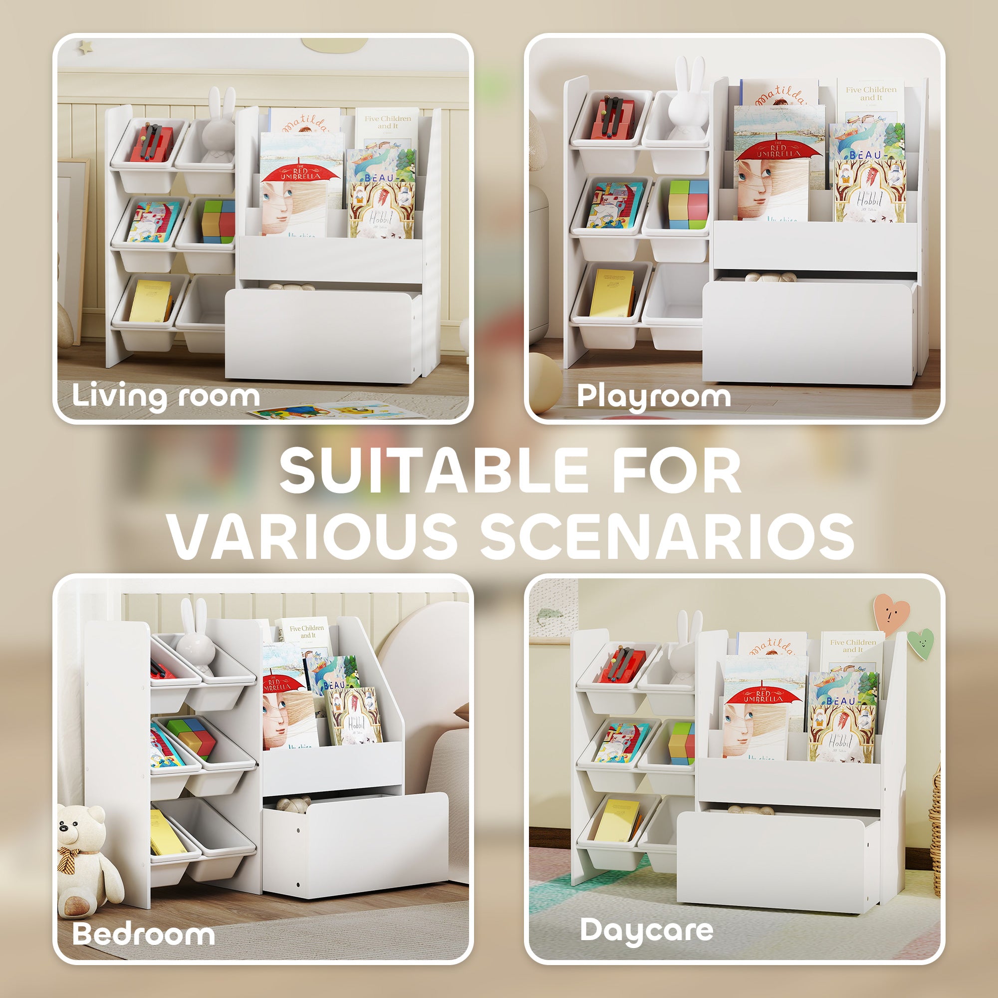Meuble de rangement pour jouets et livres pour enfants avec bacs et boîte roulante