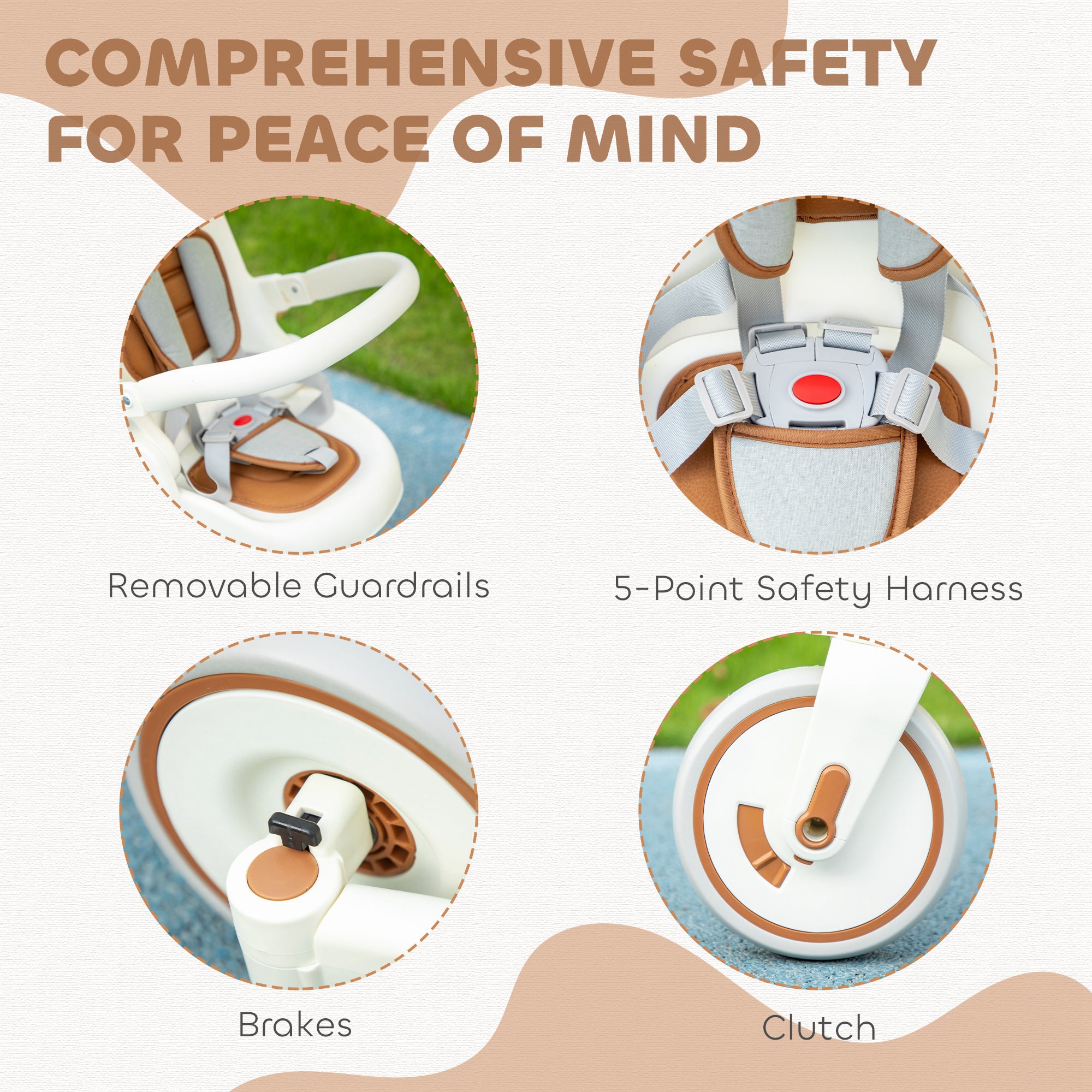 - Harnais à 5 points et barrière de sécurité amovible