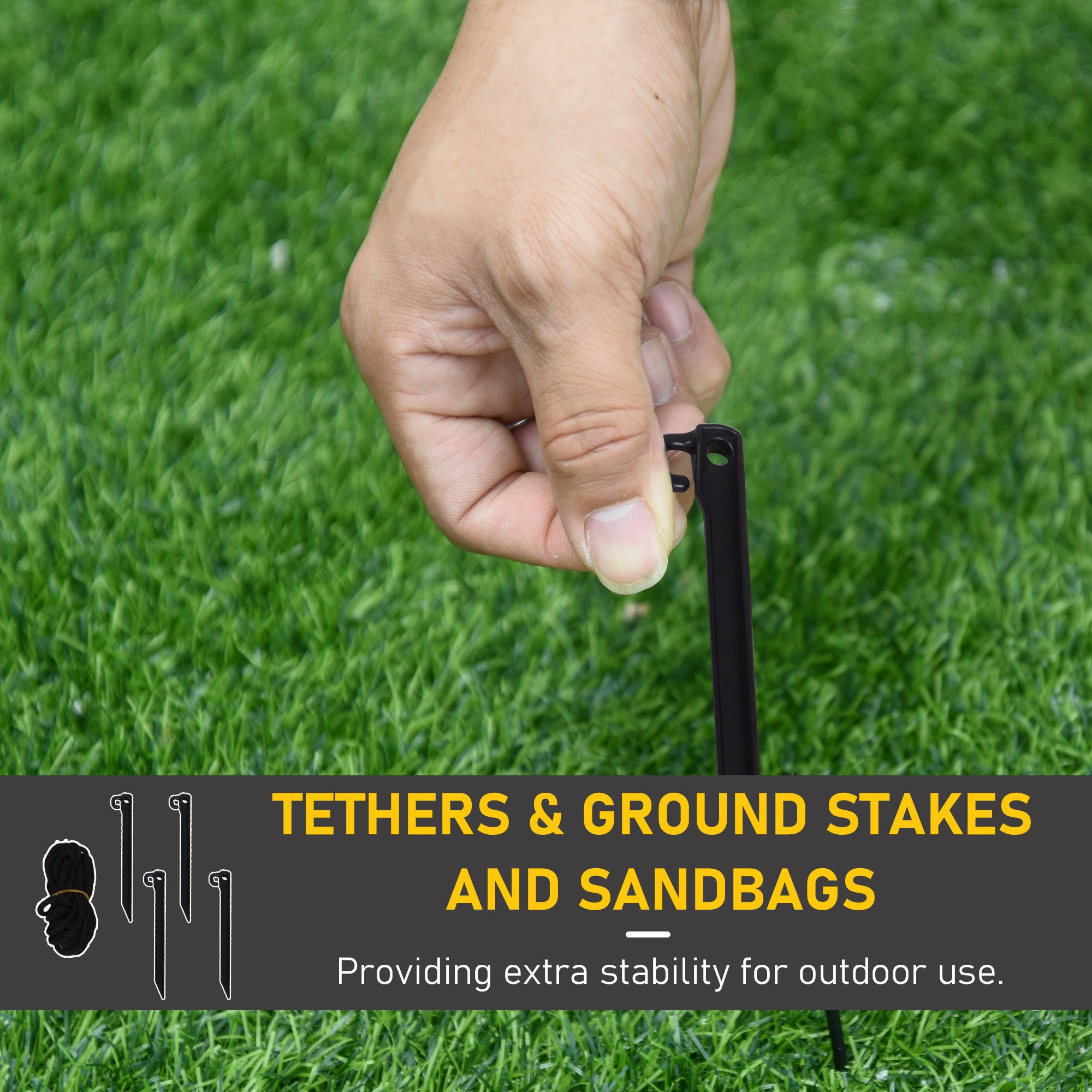 Résistante et stable : Conçue en polyester durable certifié IP44, elle est adaptée pour une utilisation intérieure et extérieure. Les piquets, cordons et sac de sable inclus assurent une stabilité parfaite, même par temps venteux.